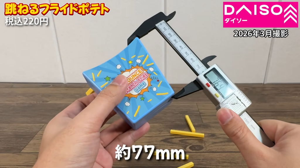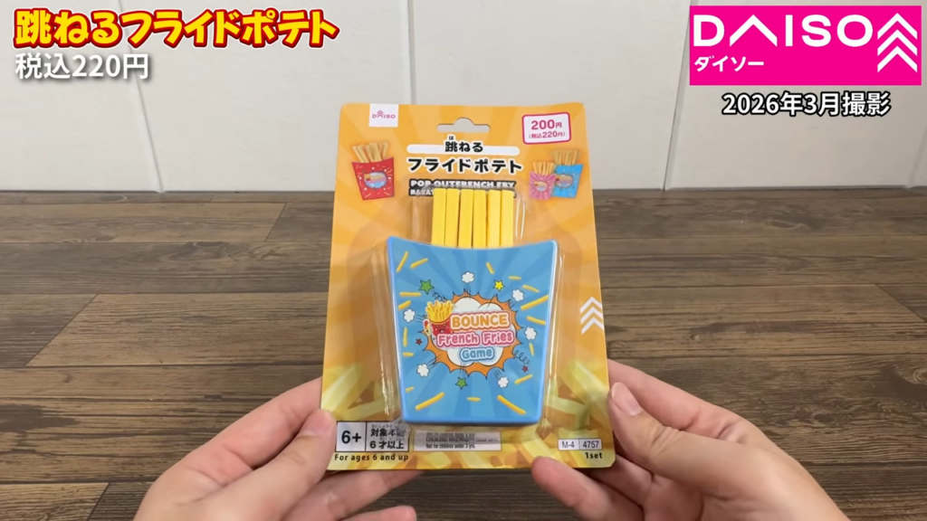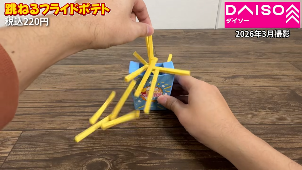 100円ショップで見かけるパーティーゲームの中でも、一際目を引く「跳ねるフライドポテト(220円)」を実際に使ってみたところ、ルールが非常に分かりやすく、ちょっとした集まりで手軽に楽しめる商品でした。