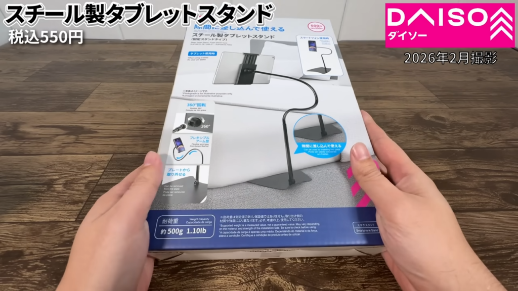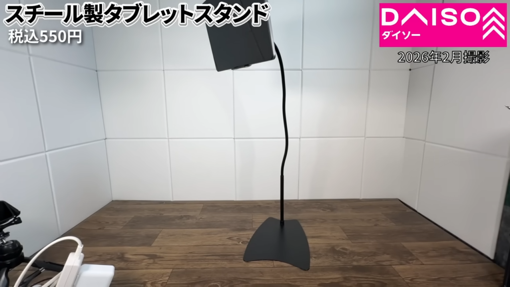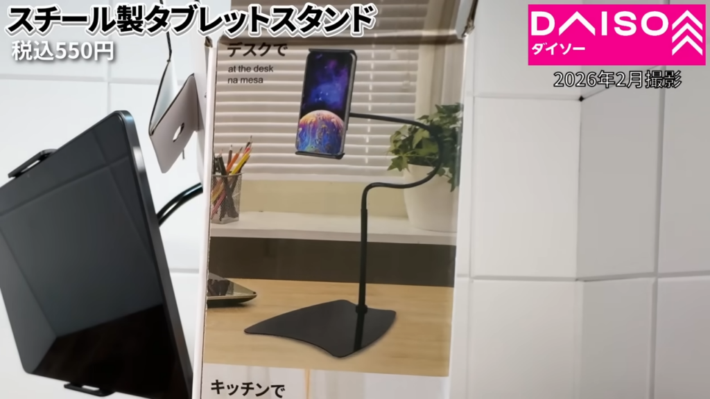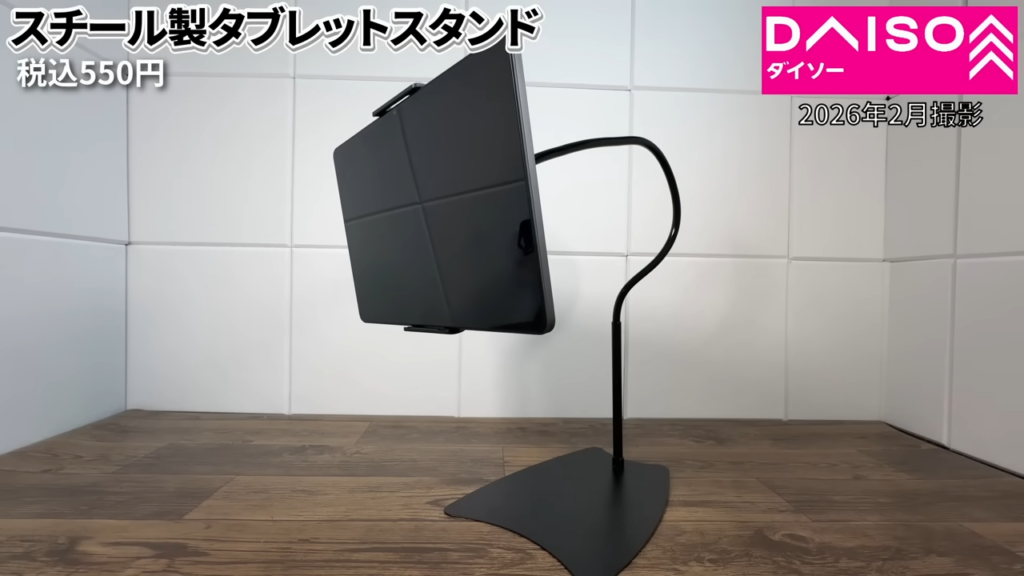 ダイソーで見つけた「スチール製タブレットスタンド(550円)」を実際に使ってみたら、土台の安定感と自由自在なフレキシブルアームの組み合わせが想像以上に使いやすく、特にベッド周りやデスクでの「当たり」商品でした。