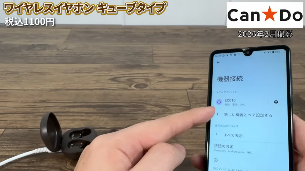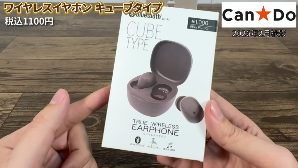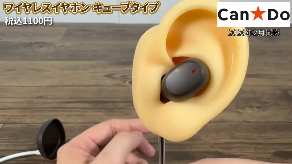 CanDo(キャンドゥ)で見つけた「ワイヤレスイヤホン(1,100円)」を実際に使ってみたところ、落ち着いたカラーリングと安定した接続性で、日常使いとして十分に使える商品でした。