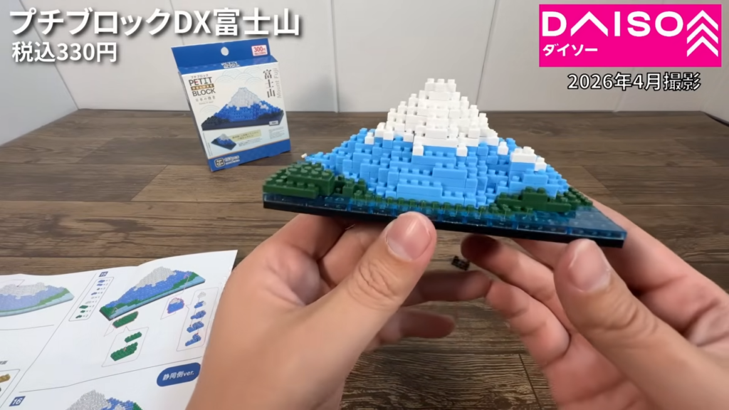ダイソーで人気のプチブロックに、日本の情景をテーマにした「プチブロック デラックス」シリーズが登場しています。今回は、日本を象徴する名峰「富士山」に挑戦。330円というお手頃価格ながら、細部までこだわりが詰まったインテリアモデルになっています。