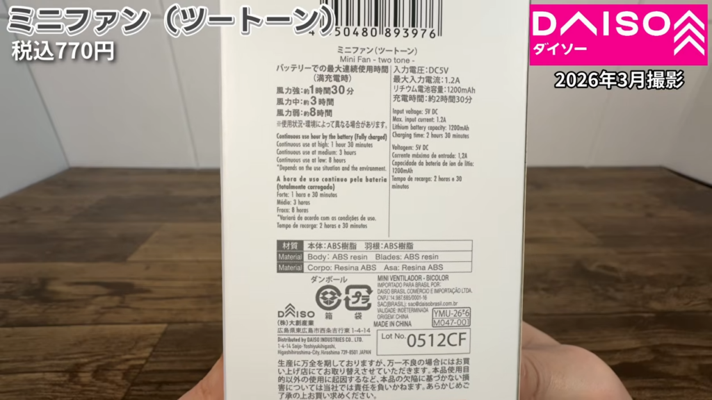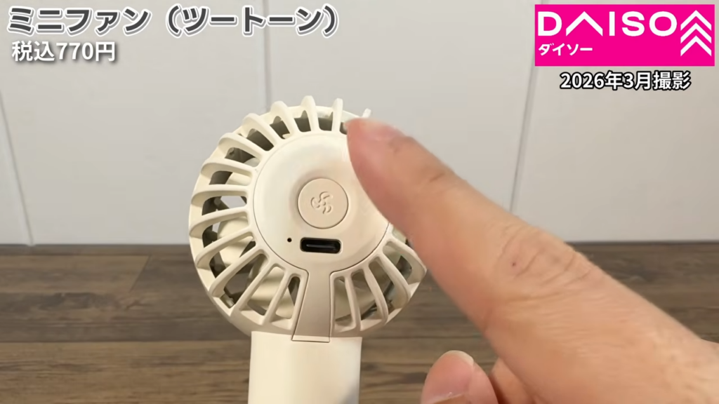 これまでの100均ハンディファンは原色に近いものが多かった印象ですが、このモデルはファッションやインテリアの邪魔をしない、洗練された仕上がりになっています。