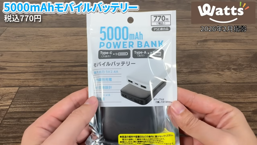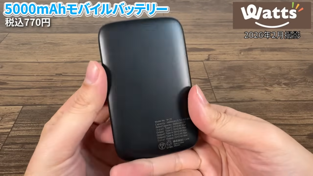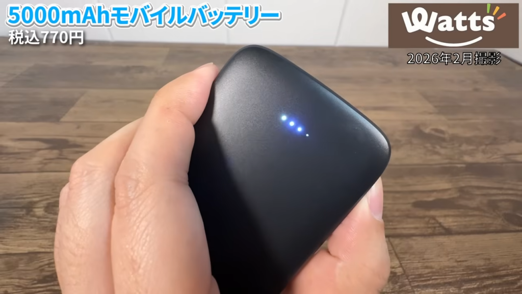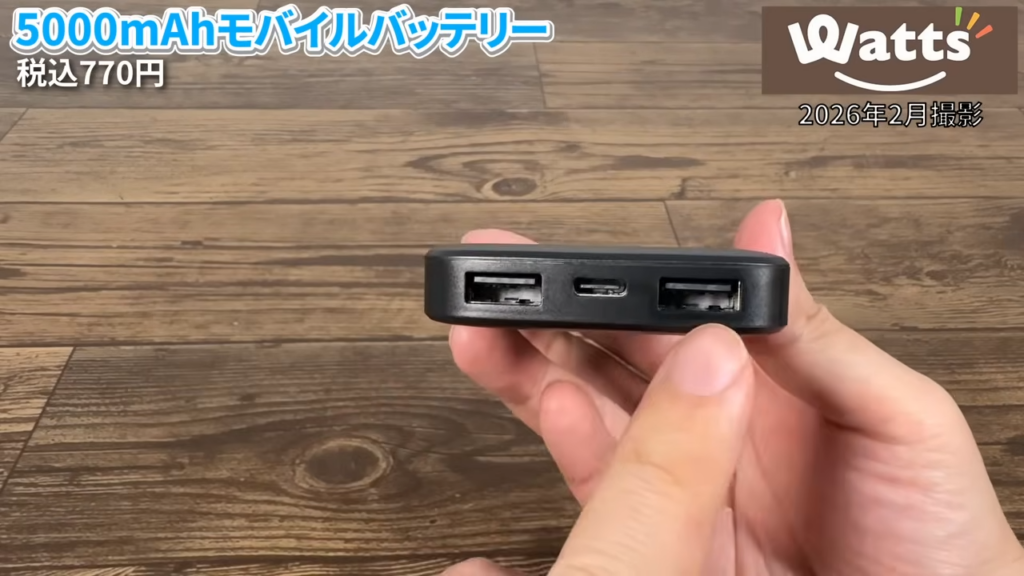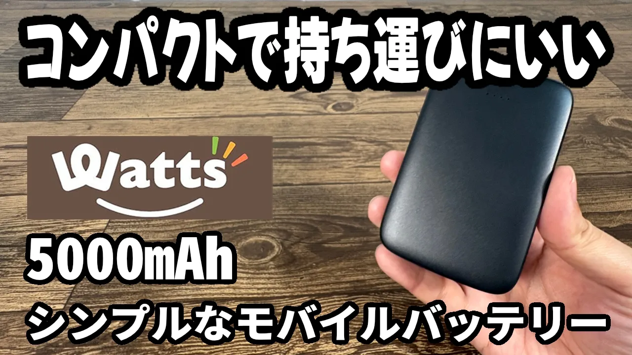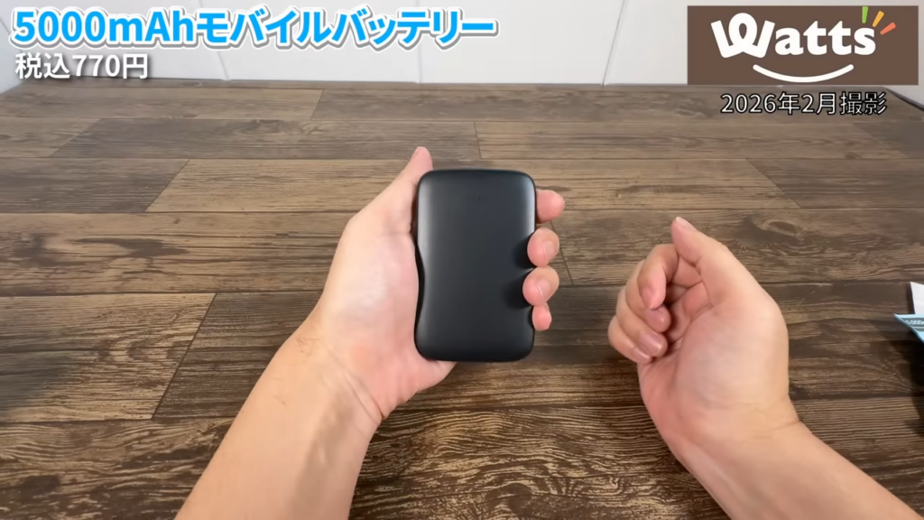 Watts(ワッツ)で見つけた「5000mAhモバイルバッテリー(770円)」を実際に使ってみたら、圧倒的なコンパクトさと必要十分な機能で、バッグに忍ばせておく予備用として最高の「当たり」商品でした。