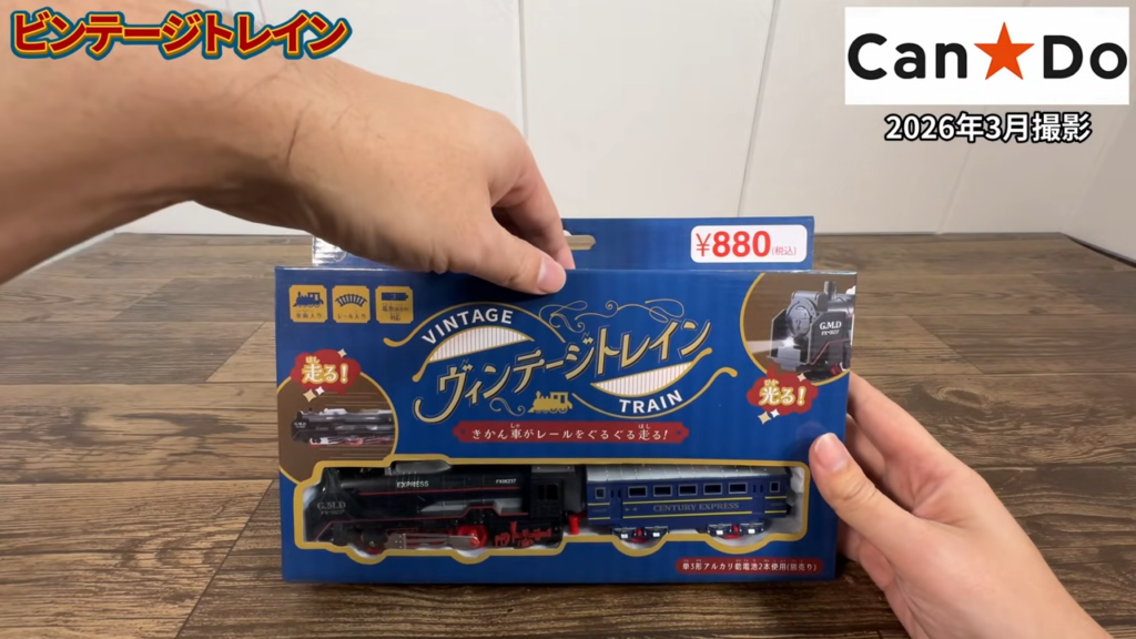 キャンドゥのビンテージトレインは、レール付きですぐ遊べる機関車おもちゃでした。