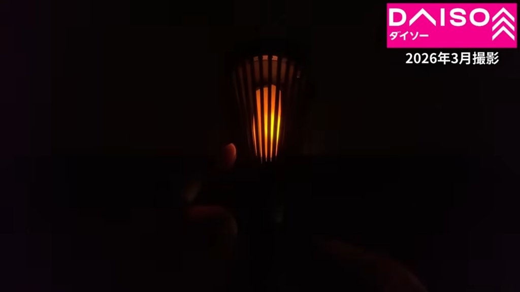 ダイソーのソーラーライト 線型 炎ゆらゆら(330円)は、炎のようにゆらゆら揺れる光を再現したガーデンライトです。