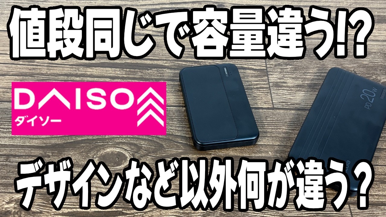 ダイソーのPD20Wモバイルバッテリー1100円を購入して、以前発売されていた1万mAhモデルと比較してみました。容量5000mAhの新モデルですが、実際の性能や使い勝手に違いがあるのかチェックしてみました。