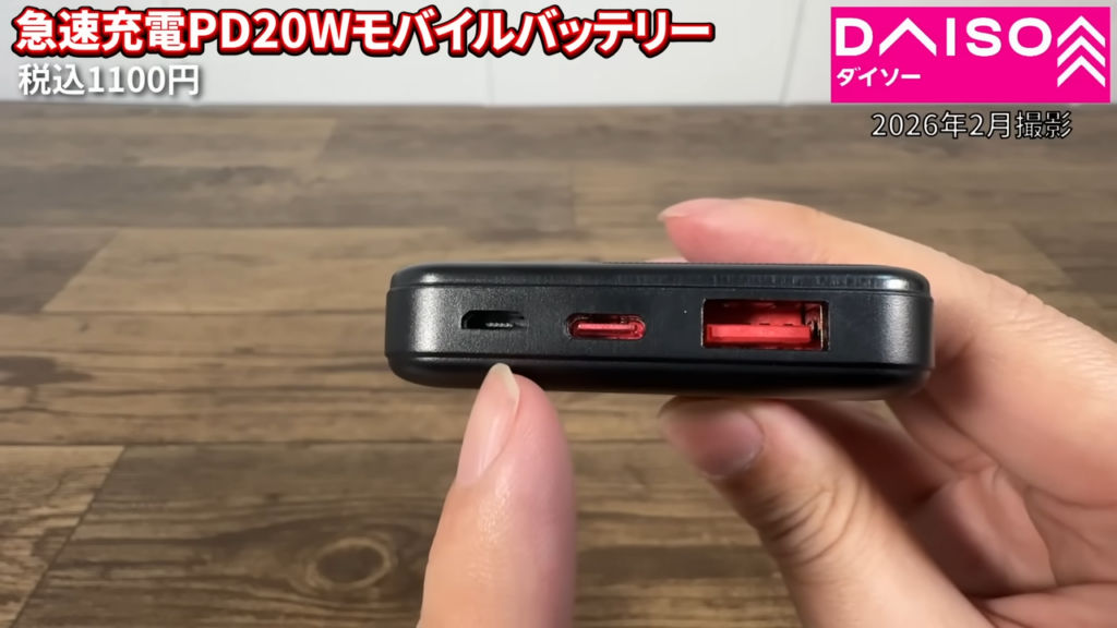 ダイソーのPD対応モバイルバッテリーは1100円で購入できるので、急速充電対応モデルとしてはかなり手頃です。