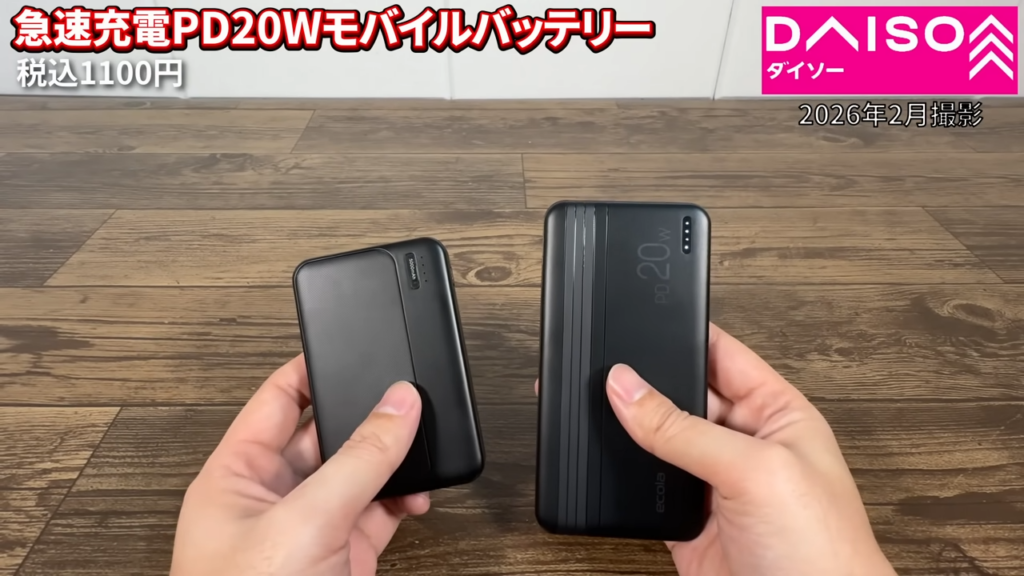 以前ダイソーで販売されていたエコラ事業部のPDモバイルバッテリー(1万mAh)と比較してみました。