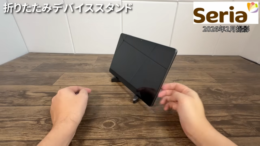 タブレットで動画を見るときの簡易スタンドとしては十分使えそうなので、気になる方はセリアでチェックしてみてください。