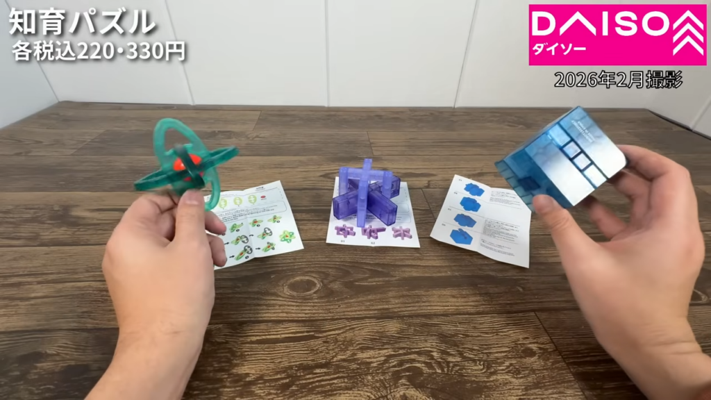 100均のおもちゃでも、探してみると意外と面白いものが見つかります。特にパズル系やキューブは大人でも遊べるので、ちょっとした暇つぶしにも良さそうな商品でした。