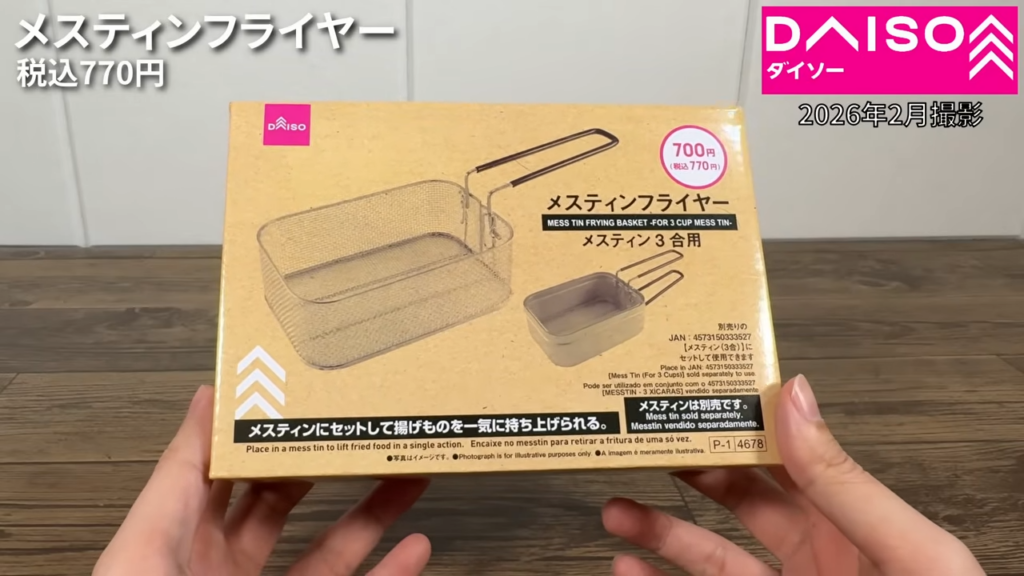 ダイソーで販売されているメスティン3合用のフライヤー。メスティンにセットして揚げ物などに使えるバスケットタイプのアイテムです。