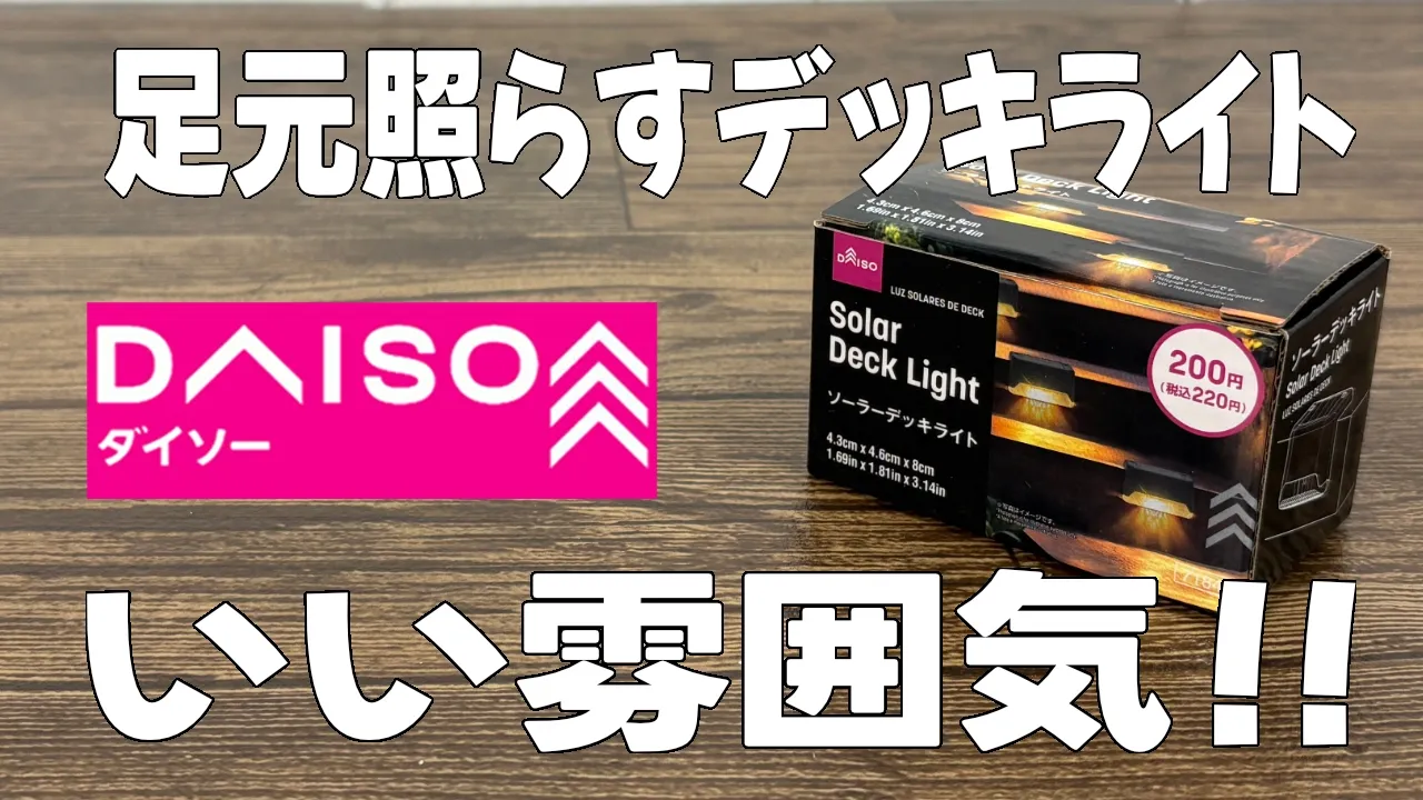 簡単な説明ダイソーの「ソーラーデッキライト(220円)」を使ってみたレビューです。ソーラー式なので電源不要で、ウッドデッキや庭の階段などに取り付けて足元を照らすことができるライト。屋外用の簡単な照明として使えるアイテムなので、実際の明るさや...