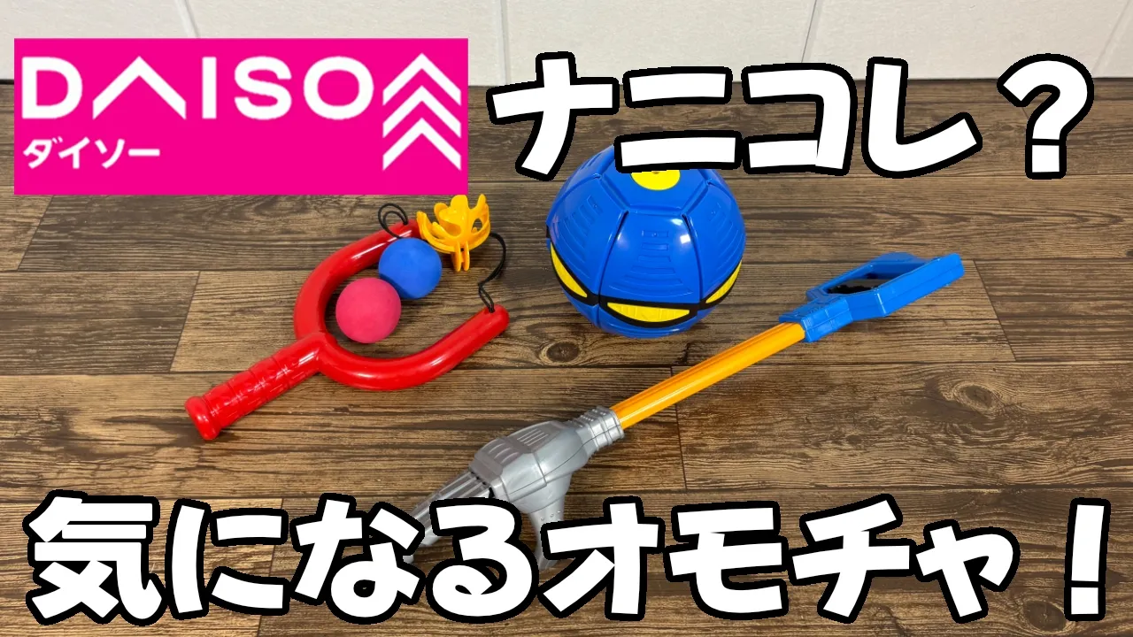 簡単な説明ダイソーで見つけたおもちゃの中から、気になった3種類を紹介します。手の形で物をつかめる「アーム」、踏むとUFOの形に変形する「サッカーUFOボール」、そしてスポンジボールを飛ばして遊べる「パチンコセット」です。どれも330円前後で...
